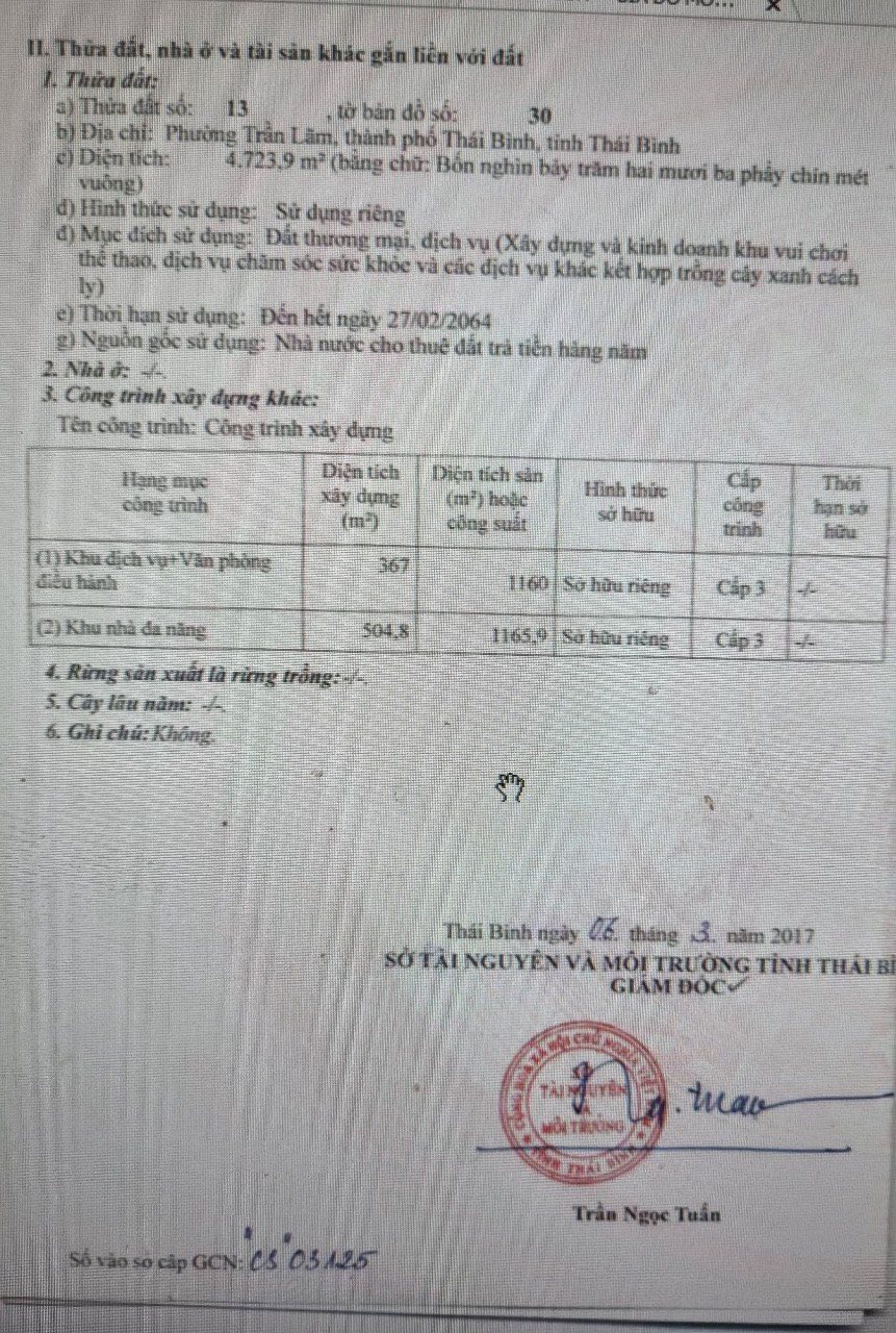 Vị trí: Lô đất số 13, tờ bản đồ số 30, phường Trần Lãm – trung tâm TP. Thái Bình